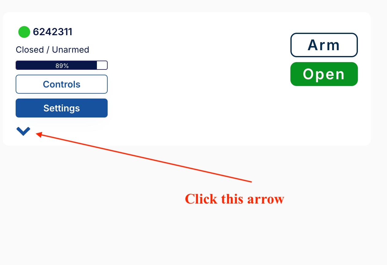 Para abrir la vista de la cámara, haz clic en el icono de la flecha hacia abajo ubicado debajo del botón de configuración.